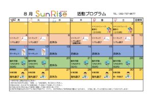 2025年6月13日 / 最終更新日 : 2025年6月13日 Rise-hensyu 月間スケジュール(Rise) Rise R7.8月のプログラム こんにちは!放課後等デイサービスRiseです🌈 令和7年8月の月間活動プログラムのお知らせです☆ みんなの夏休みをより楽しいものにしていけるよう、色々なイベントを計画中です♪ さらに、Rise職員の知り合いの他事業所の方からお化け屋敷のイベントにお誘いをいただきました! Follow me!