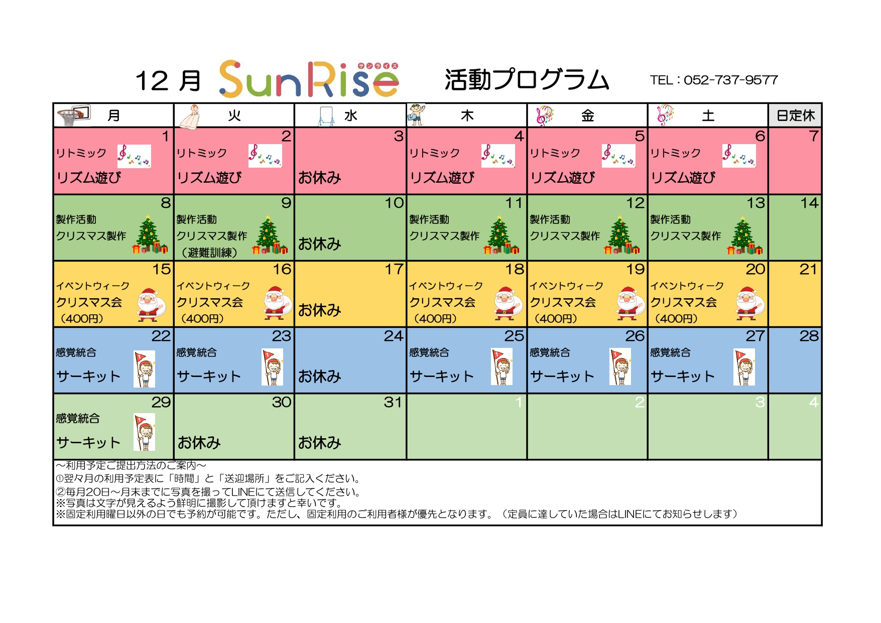 2025年10月14日 / 最終更新日 : 2025年10月14日 Rise-hensyu SunRiseニュース SunRise R7.12月 月間活動プログラム こんにちは!児童発達支援SunRiseです(^O^)/ 令和7年12月の月間活動プログラムのお知らせです☆彡 Follow me!
