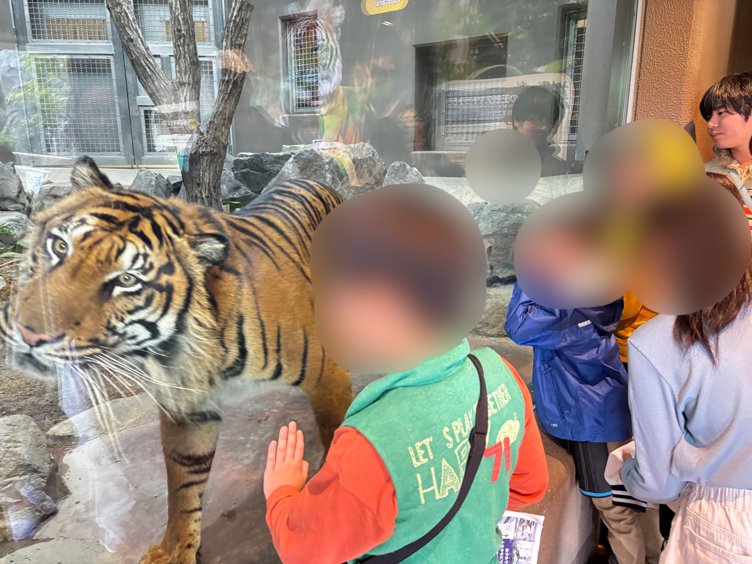 新しくなったトラ舎では、ガラス越しに虎が大接近!大迫力に子どもたちも大興奮でした!